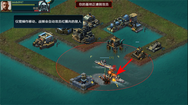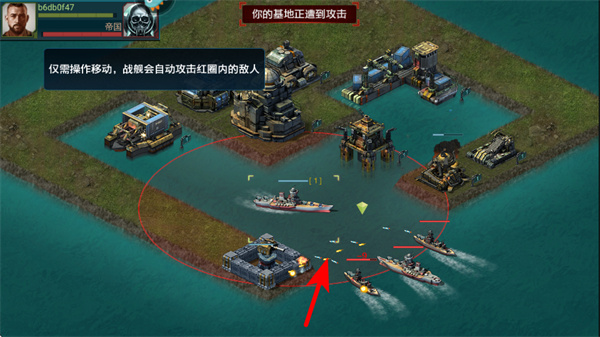 2、調(diào)整戰(zhàn)艦的移動(dòng)路徑,將其部署在紅色攻擊范圍內(nèi),利用戰(zhàn)艦的自動(dòng)攻擊機(jī)制,對(duì)單位發(fā)起反擊。