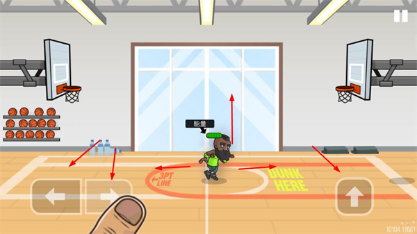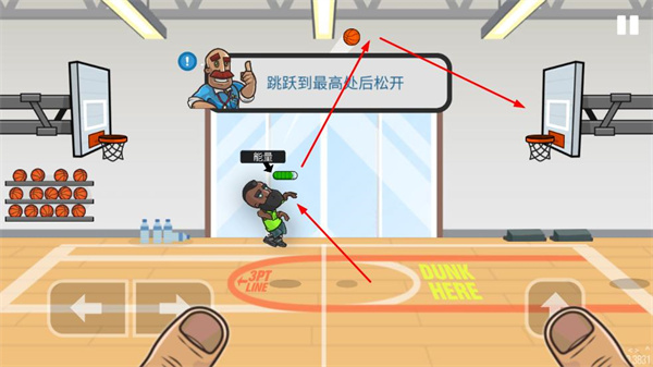 1、在訓(xùn)練場界面,操控角色移動并收集資源,積累能量,為投籃操作做準(zhǔn)備。