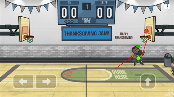 3、在對戰(zhàn)關(guān)卡中,操控角色完成扣籃等操作,積累得分,與對手競爭比賽勝利。