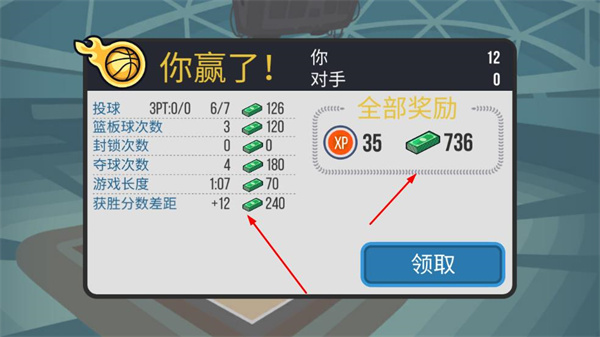 4、比賽勝利后,查看戰(zhàn)績數(shù)據(jù),點擊領(lǐng)取獲取XP與資源獎勵。