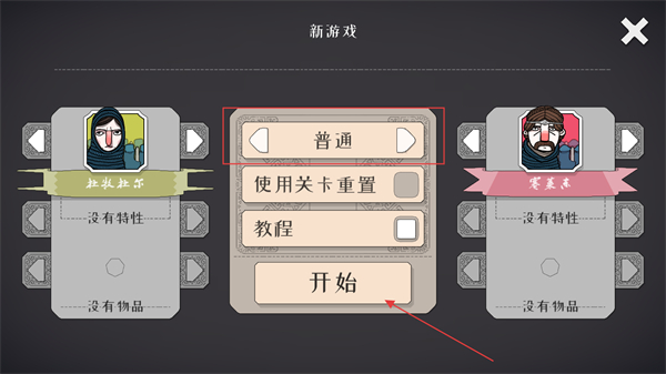 2、在界面可選擇角色,將難度調(diào)整為普通,勾選教程選項(xiàng)后點(diǎn)擊開(kāi)始,完成初始設(shè)置并進(jìn)入游戲。