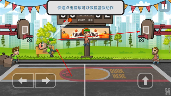 2、對(duì)戰(zhàn)中按提示快速點(diǎn)擊投球,完成投籃假動(dòng)作,干擾對(duì)手并推進(jìn)得分進(jìn)程。
