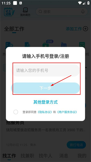 2、在彈出的請輸入手機號登錄/注冊窗口里,填寫請輸入手機號,點擊下一步。