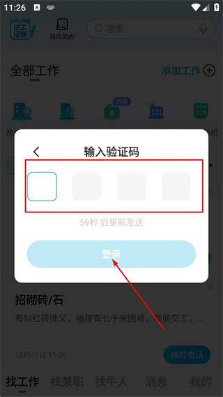 3、進入輸入驗證碼頁面,填寫收到的驗證碼后,點擊登錄,完成登錄/注冊操作。