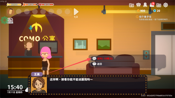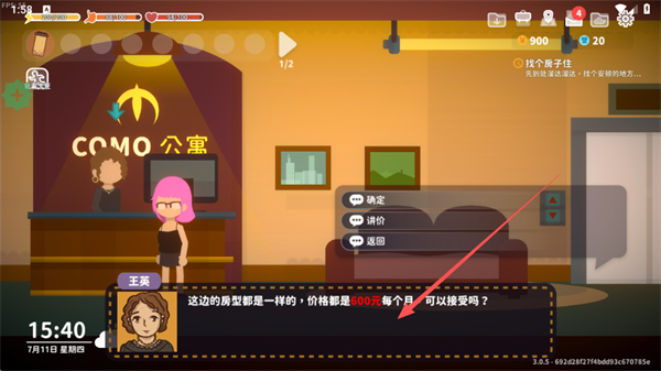 1、與公寓前臺(tái)交互,查看房租信息,選擇確定進(jìn)入議價(jià)流程。