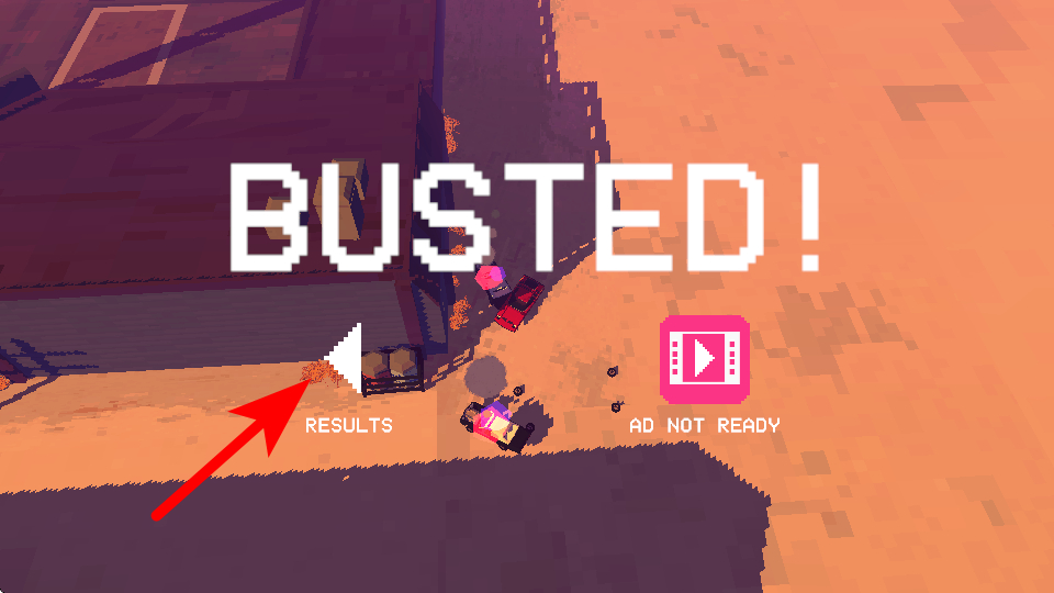 4、若出現(xiàn)BUSTED被抓捕界面,點(diǎn)擊RESULTS查看本局結(jié)果,這是總結(jié)游玩經(jīng)驗(yàn)的重要操作,通過查看結(jié)果調(diào)整后續(xù)的駕駛路線與躲避策略,提升下一局的逃亡效率。