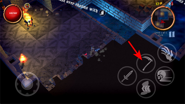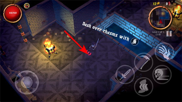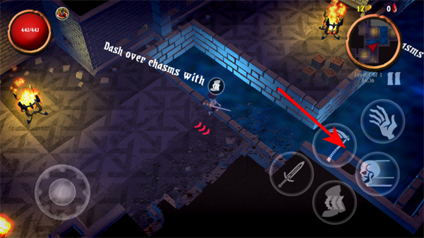 2、遇到場(chǎng)景中的裂隙地形時(shí),點(diǎn)擊沖刺按鈕操控角色向裂隙方向移動(dòng),召喚出場(chǎng)景,注意把控沖刺時(shí)機(jī),避免掉落至危險(xiǎn)區(qū)域。