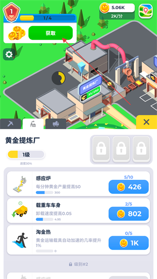 2、進(jìn)入礦區(qū)場(chǎng)景,找到黃金提煉廠建筑,準(zhǔn)備進(jìn)行升級(jí)操作。