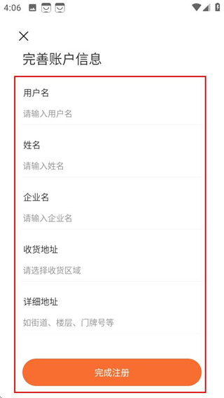 3、在完善賬戶信息頁(yè)面,填寫相關(guān)信息后點(diǎn)擊完成注冊(cè),完成賬號(hào)注冊(cè)。