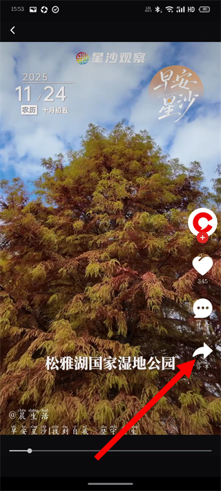 3、在視頻播放頁面,點(diǎn)擊右側(cè)分享按鈕,彈出分享選項(xiàng)菜單。
