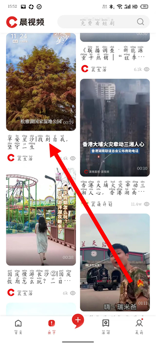 1、打開晨視頻,在主界面點(diǎn)擊底部故事,進(jìn)入視頻內(nèi)容頁面。