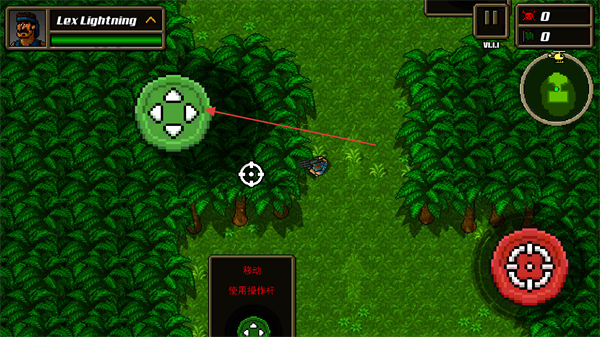 2、使用方向按鈕控制角色在叢林場景中移動,推進游戲進程。