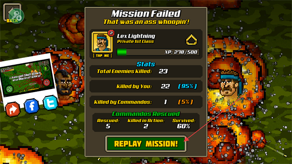 4、若任務(wù)失敗,點(diǎn)擊REPLAYMISSION!按鈕重新開始任務(wù),積累經(jīng)驗(yàn)提升戰(zhàn)斗技巧。