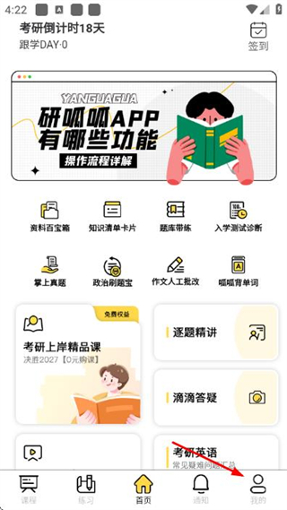 1、在研呱呱APP首頁點擊底部我的選項,進(jìn)入個人中心頁面。