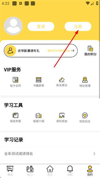 2、在個人中心頁面點擊注冊按鈕,進(jìn)入賬號注冊頁面。