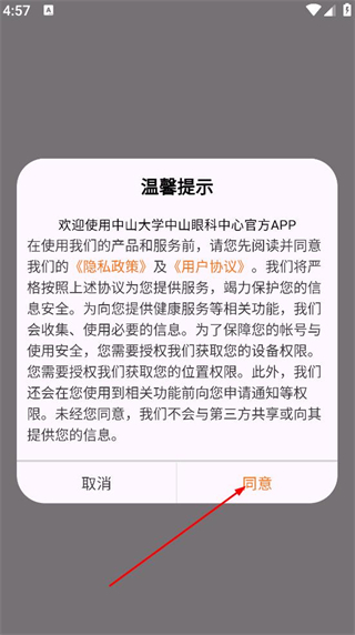 1、在溫馨提示彈窗中,點擊同意,進入登錄頁面。