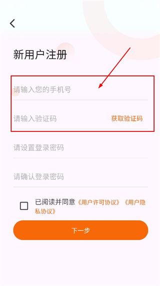 3、填寫手機號,點擊獲取驗證碼后填寫收到的請輸入驗證碼。