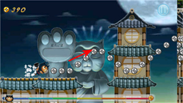 忍者貓的跳躍、攀爬、繩索滑行等動作流暢自然,沒有卡頓感,配合場景切換,帶來順滑的視覺體驗,增強跑酷的沉浸感。