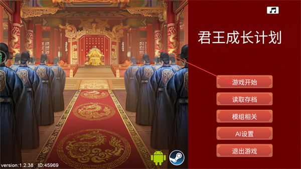 1、打開君王成長計劃游戲主頁,點擊右側(cè)游戲開始按鈕,進(jìn)入游戲劇情模式。