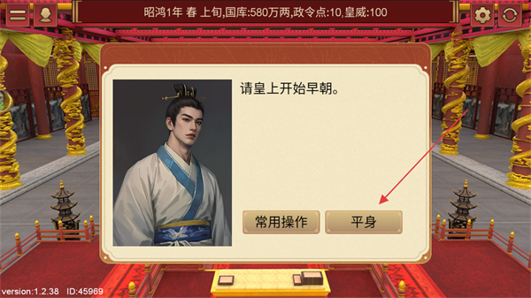 4、在宣政殿內(nèi)開始例行的早朝,點擊選項進(jìn)入游戲劇情。