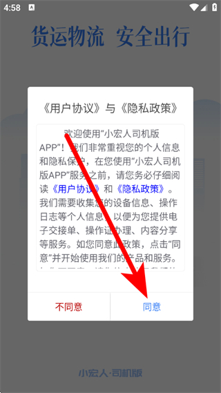 1、打開小宏人,在隱私政策彈窗中,點(diǎn)擊同意,進(jìn)入登錄界面。