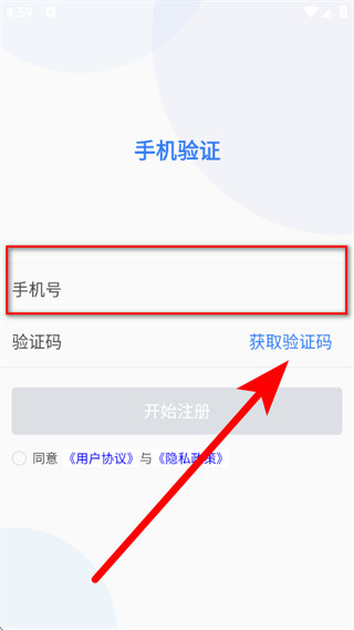 3、在手機(jī)驗(yàn)證頁面,輸入手機(jī)號,點(diǎn)擊獲取驗(yàn)證碼。