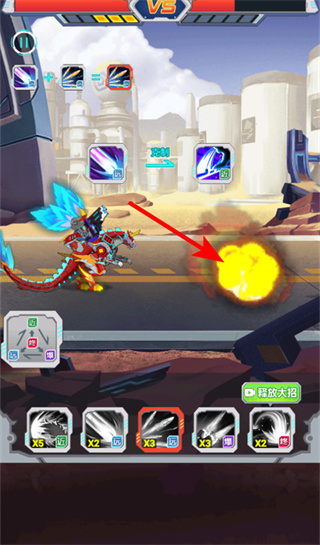 2、當(dāng)技能槽積累足夠能量后,選擇范圍傷害類技能釋放,借助技能的爆炸效果對(duì)敵方造成高額傷害,快速壓制敵方的血量狀態(tài)。