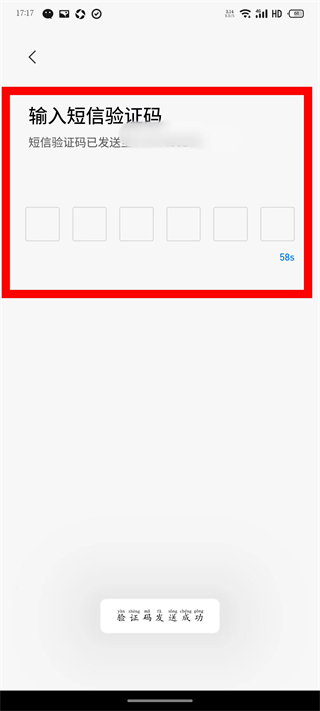4、在短信驗證碼頁面,填寫收到的6位驗證碼,完成賬號注冊登錄。