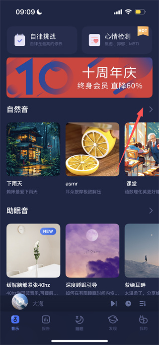 1、在蝸牛睡眠首頁,點(diǎn)擊自然音區(qū)域,進(jìn)入自然音頁面。