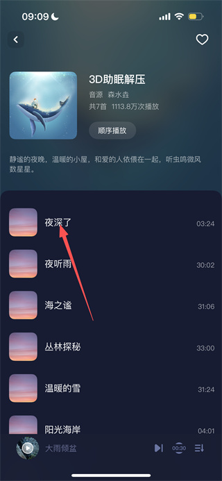 4、在內(nèi)容詳情頁,選擇夜深了,即可開始播放助眠音頻。