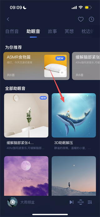 3、在助眠音頁面,選擇目標(biāo)內(nèi)容,進(jìn)入該內(nèi)容詳情頁。