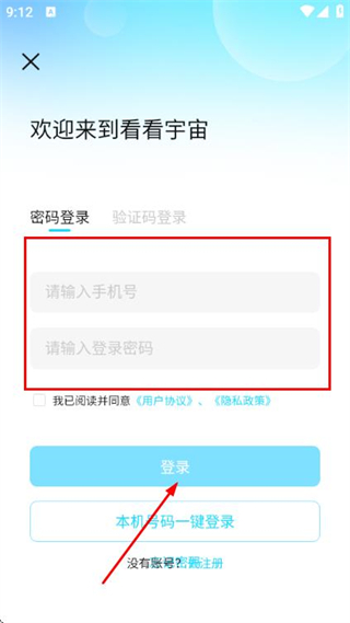 3、在登錄頁面填寫手機號和密碼,勾選協(xié)議后,點擊登錄按鈕完成賬號登錄操作。