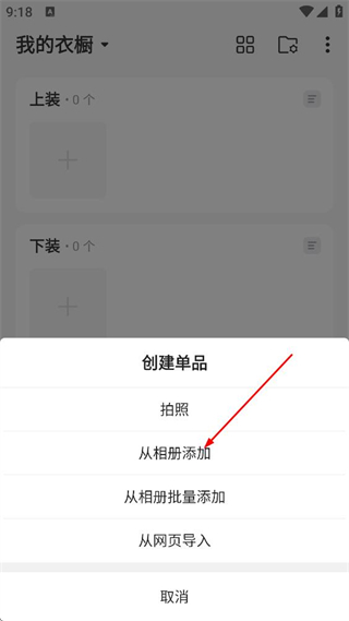 2、在創(chuàng)建單品菜單中,選擇從相冊(cè)添加選項(xiàng),進(jìn)入相冊(cè)選擇要添加的單品圖片。