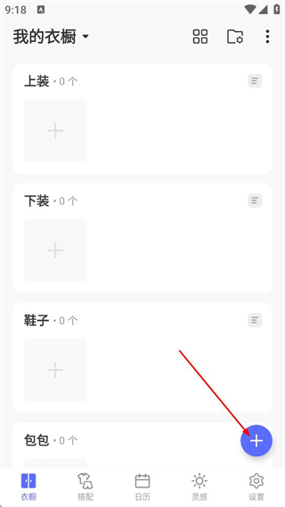 1、在我的衣櫥頁(yè)面,點(diǎn)擊右下角的藍(lán)色加號(hào)按鈕,彈出創(chuàng)建單品的操作菜單。
