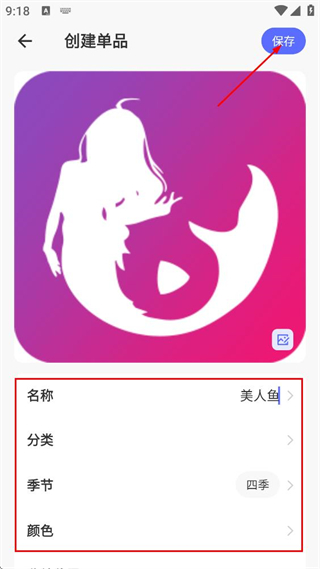 4、設(shè)置單品的名稱-分類-季節(jié)等信息后,點(diǎn)擊右上角的保存按鈕,完成創(chuàng)建操作。