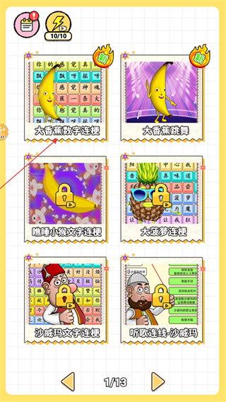 1、點(diǎn)擊該關(guān)卡卡片即可進(jìn)入對(duì)應(yīng)的文字拼接挑戰(zhàn)界面,這是開啟新手關(guān)卡的首要操作。