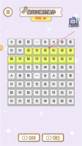 3、保持連續(xù)正確的文字拼接節(jié)奏,當(dāng)連續(xù)拼接正確的次數(shù)達(dá)標(biāo)后,會(huì)有機(jī)會(huì)解鎖隱藏獎(jiǎng)勵(lì)。