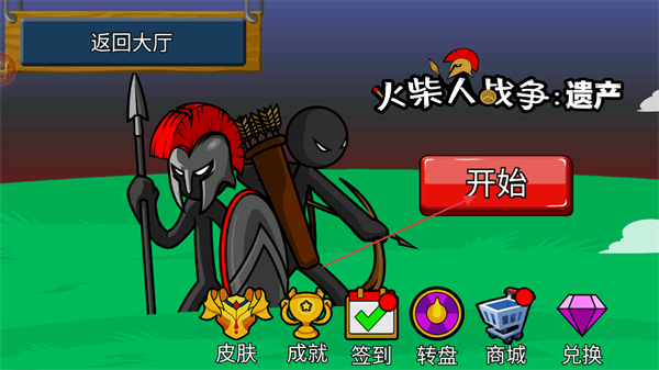 1、打開火柴人戰(zhàn)爭:遺產(chǎn)游戲模式,點(diǎn)擊右側(cè)開始按鈕進(jìn)入戰(zhàn)斗。