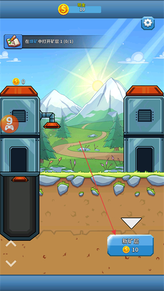 1、點擊鉆礦層按鈕花費10金幣,開啟礦層挖掘,推進在礦洞中開拓礦層1/1任務。