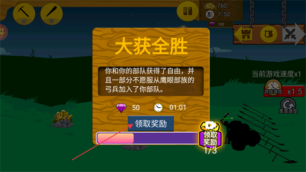 3、成功推翻敵方的雕像占領敵方領地后即為勝利,可以領取鉆石作為獎勵。