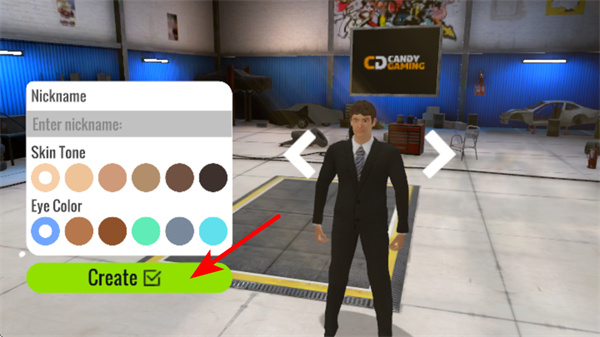 1、在角色創(chuàng)建界面,先設(shè)置昵稱,再選擇膚色、eye顏色等外觀選項(xiàng),調(diào)整完后點(diǎn)擊Create按鈕完成角色創(chuàng)建,進(jìn)入主玩法場(chǎng)景。