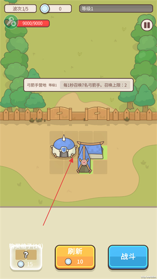 1、查看提示每隔15秒召喚1名弓手,召喚上限2,準備部署堡壘防御。