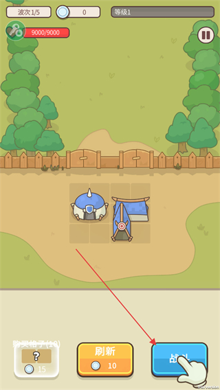 2、點擊戰(zhàn)斗按鈕,開啟防御戰(zhàn)斗,進入堡壘守護場景。