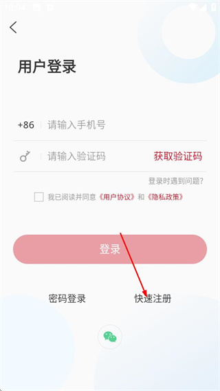 3、在登錄頁面,點擊快速注冊選項,進入用戶注冊頁面。