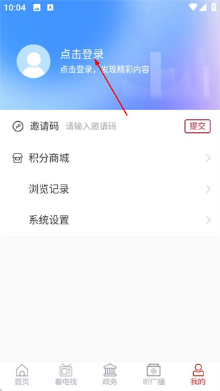 2、在個人中心頁面,點擊點擊登錄區(qū)域,進入用戶登錄頁面。