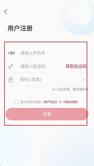 4、在注冊頁面,填寫信息并勾選協(xié)議后,點擊注冊完成賬號注冊。