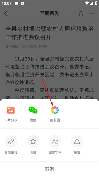 3、在分享菜單中,選擇朋友圈,即可將該資訊分享到朋友圈。