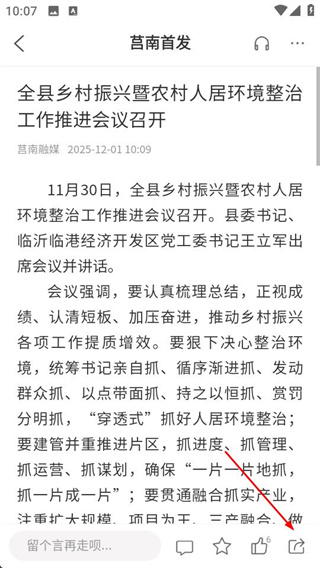 2、在資訊詳情頁面,點(diǎn)擊右下角的分享按鈕,彈出分享方式選擇菜單。
