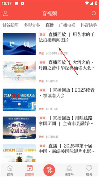 2、在音視頻頁(yè)面,點(diǎn)擊直播標(biāo)簽,切換至直播板塊頁(yè)面。
