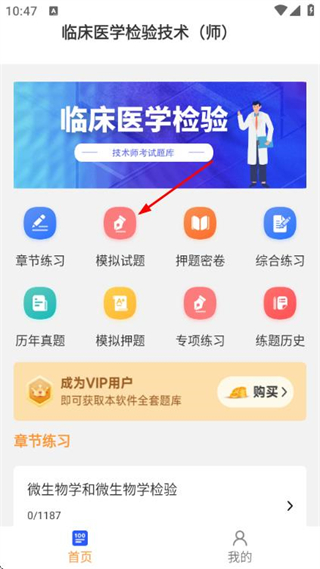 1、在首頁點(diǎn)擊模擬試題選項(xiàng),進(jìn)入模擬試題頁面。